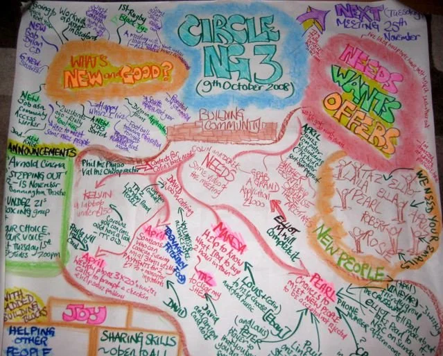 Circle NG3 was created and met for the first time on 1st July 2008. There was a fine sharing of vision for the community we would all love to live in some great exchanges and connections made! Young people were present and made some wonderful contributions.