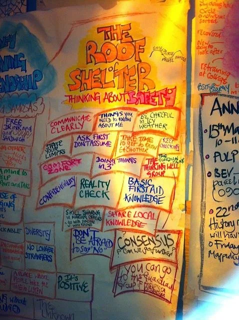 Addressing issues of safety at end of the meeting and checking that everyone is happy with arrangements that have been made. However we must emphasise the need to do things in groups of 3 and if someone drops out the arrangement should be postponed. However the circle or the guardians can not be responsible, people come together outside the circle at their own risk.